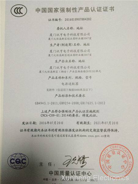 Xunheng implements ISO 9001 quality management system, uses safe, reliable, efficient and sustainable manner to manage the production. Our main executive team is composed of professionals and experts who have more than twenty years’ experience in electronic industry management. Furthermore, Xunheng adheres to the implementation of humanized management, advanced technology and management concept to manage the enterprise. Our R&D team consists of about 20 talented engineers and some of the senior engineers who have been engaged in power supply design and development for more than 20 years, which fully guarantee the quality of the products design. Moreover, all our products well meet the requirements of EU CoC V5 and U.S. DoE VI/CEC VI (six level of energy efficiency standard) and come with safety approvals of UL, CE, CCC, CB, ETL, GS, BS, KC, SAA, PSE, RoHS and other marks and reliability certifications. Being widely used in the individual products, industrial equipment, office equipment, household appliances, medical equipment, information and communication equipment, mobile chargers, set top boxes, and many other fields, Xunheng products have garnered high recognition among the industry counterparts and customers.